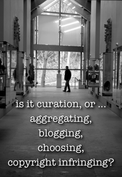 Here’s The Awl’s co-editor, Choire Sicha, for instance, on the subject of rebloggers who fancy themselves curators: “As a former actual curator, of like, actual art and whatnot, I think I’m fairly well positioned to say that you folks with your blog and your Tumblr and your whatever are not actually engaged in a practice of curation. Call it what you like: aggregating? Blogging? Choosing? Copyright infringing sometimes? But it’s not actually curation, or anything like it. . . .” To which a commenter added: “My Tumblr isn’t so much curated space as it is a symptom of deeper pathologies made manifest.”